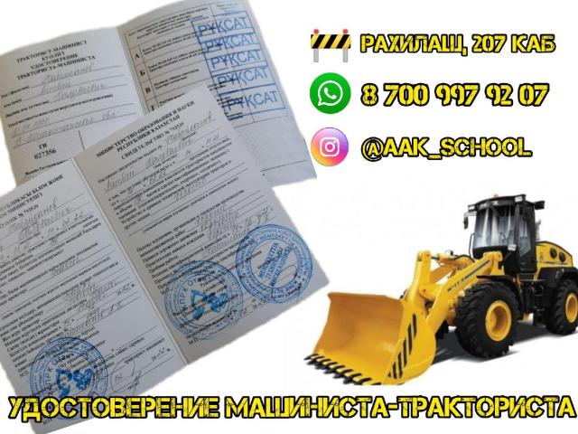 Дорогие друзья! «Ассоциация автошкол Казахстана» ждет вас! Онлайн обучение по всем категориям через приложение либо через сайт. Категории А1 А В1 В С1 С Д1 Д ВЕ СЕ ДЕ С1Е Д1Е по 8000тгКатегория ВС1 16000тг УСКОРЕННЫЕ КУРСЫ ПО ВСЕМ КАТЕГОРИЯМПри записи на любую категорию 50% скидка Для студентов скидка 7000тгВС1 14000 Разрешение на перевозку "Опасных грузов " Обучение ТРАКТОРИСТА МАШИНИСТА 1 КЛАССА (АБВ...